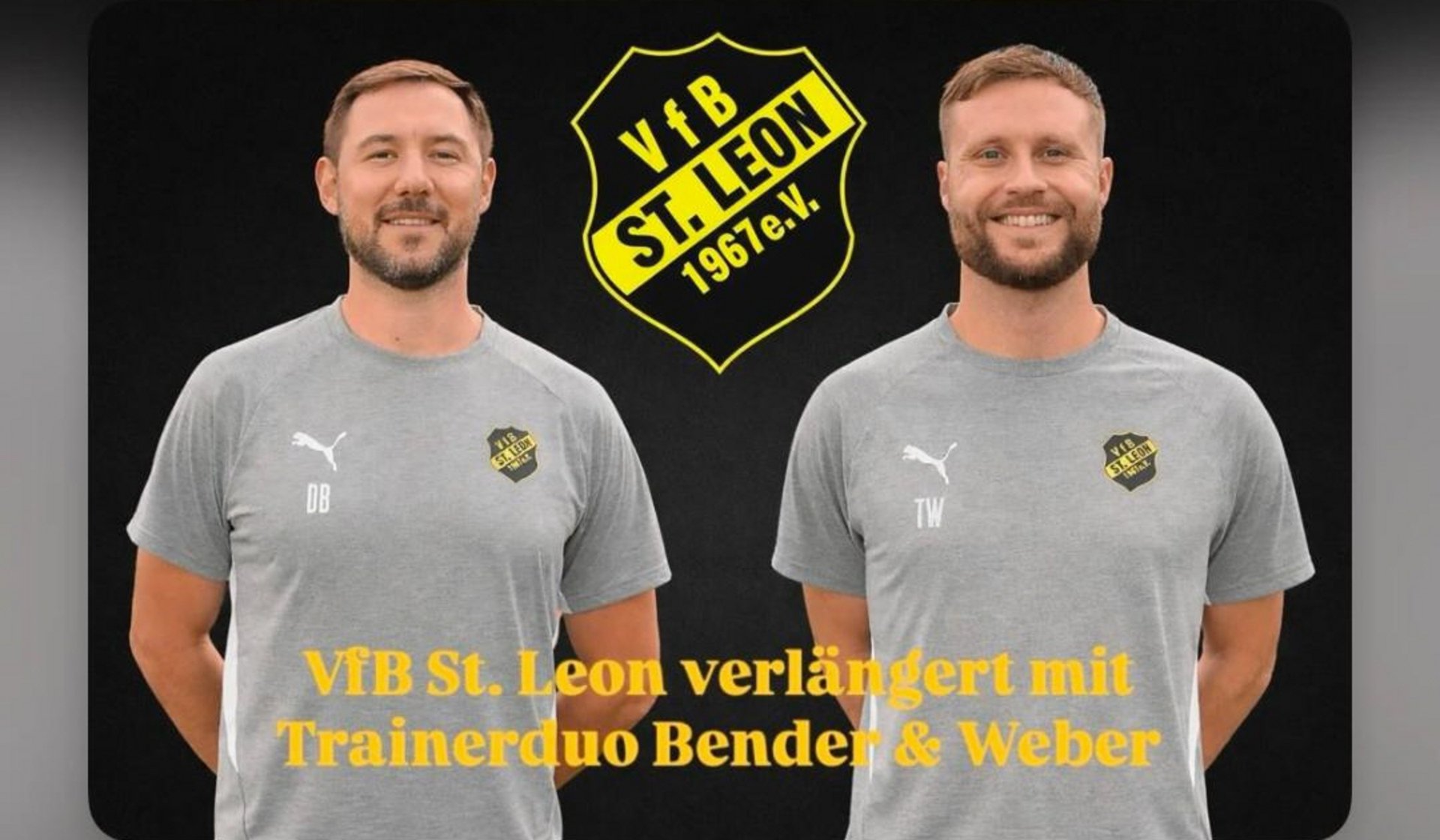 Der VfB St. Leon setzt weiterhin auf Kontinuität an der Seitenlinie: Der Verein hat die Zusammenarbeit mit seinem Trainerduo Daniel Bender und Timo Weber verlängert. Die beiden Cheftrainer der 1. Mannschaft werden auch in der Saison 2026/2027 gemeinsam verantwortlich sein.